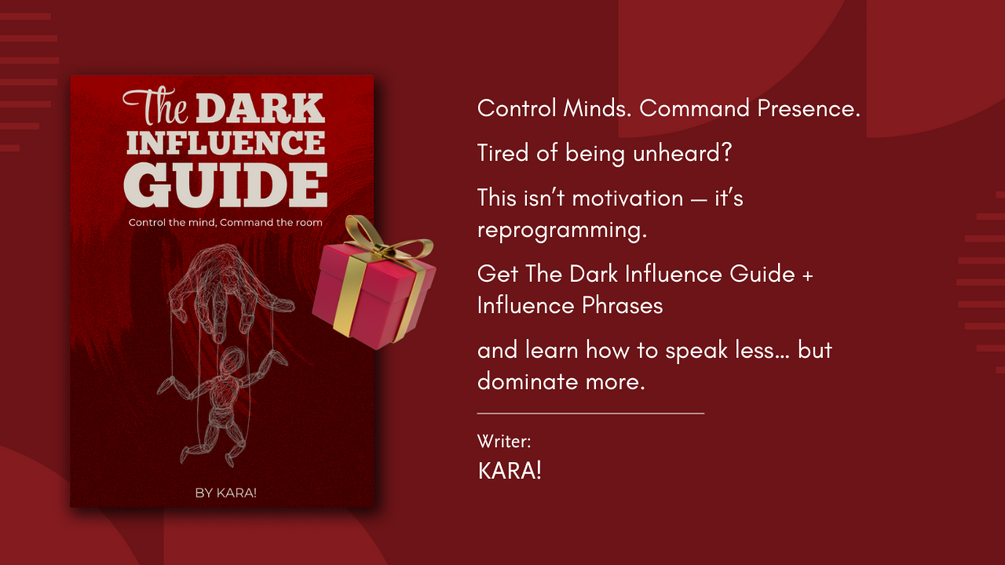 The Dark Influence Guide reveals the hidden psychology of control — how calm presence, precise language, and strategic silence reshape the way people react to you.